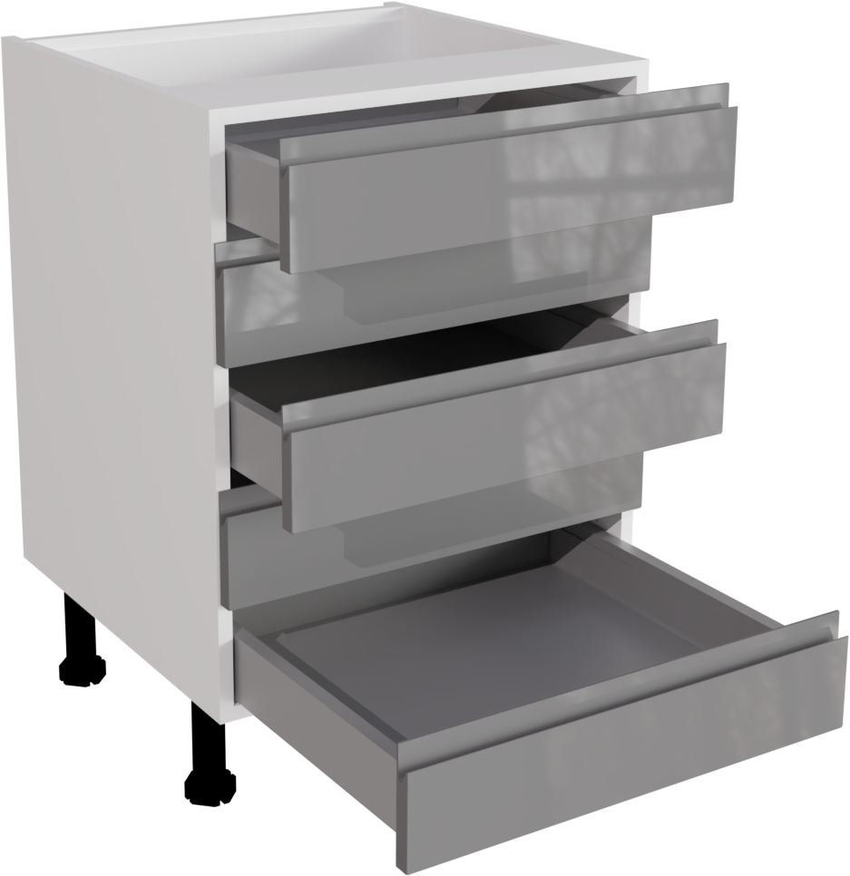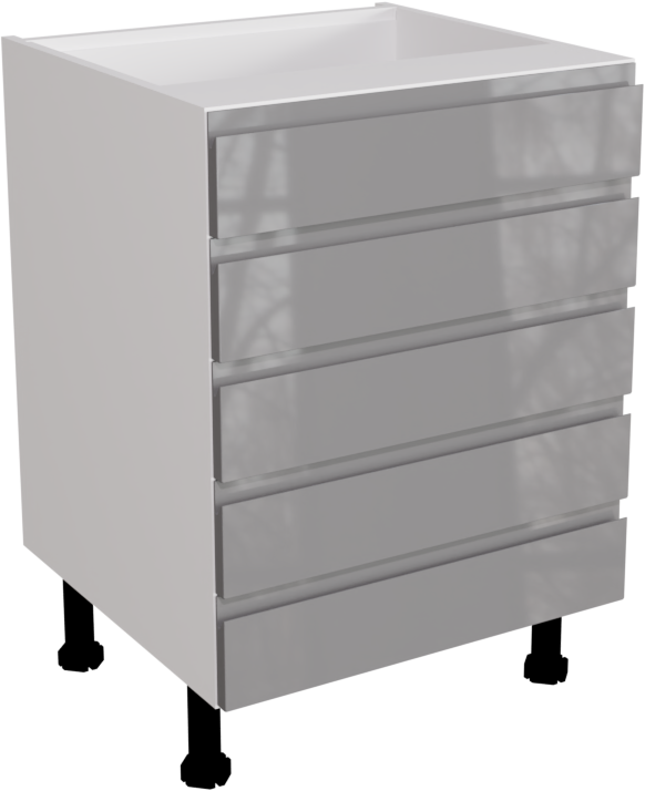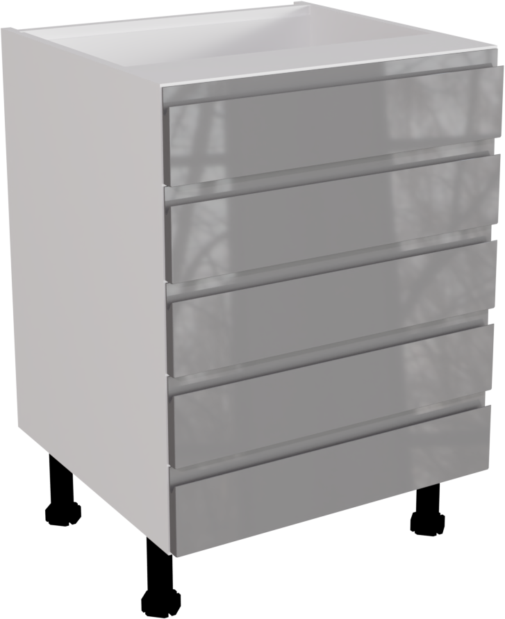 This is a 600mm handleless, gloss dust grey kitchen 5 drawer base unit available to buy online now. This unit includes the following parts: