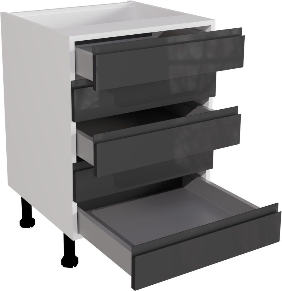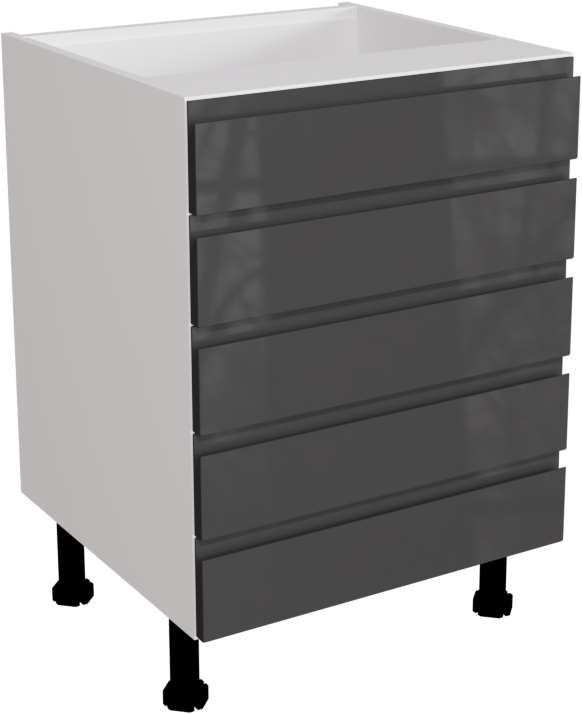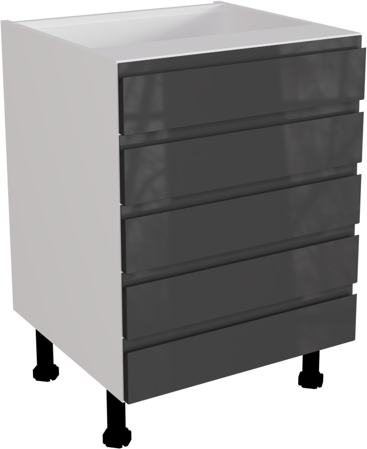 This is a 600mm handleless, gloss graphite kitchen 5 drawer base unit available to buy online now. This unit includes the following parts: