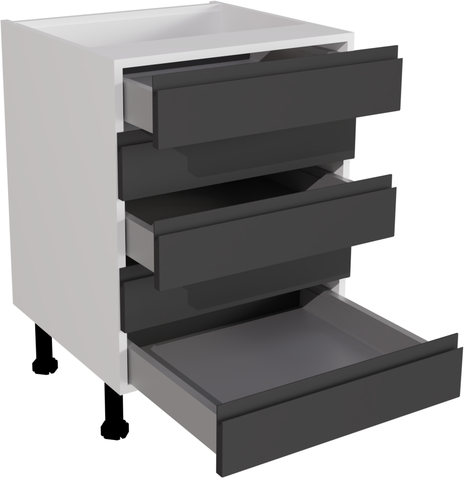 The 600mm Handleless Matt Graphite Kitchen 5 Drawer Base Unit, meticulously crafted in Britain, epitomises modern elegance with its sleek design and premium matt graphite finish. Offering versatile storage options with five spacious drawers, it seamlessly integrates into contemporary kitchen layouts while adding both practicality and sophistication. This listing includes the following parts: