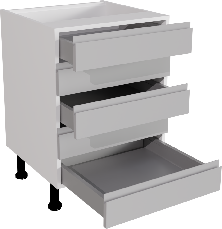 The 600mm Handleless Matt Light Grey Kitchen 5 Drawer Base Unit seamlessly blends form and function, providing ample storage space with its five drawers while exuding contemporary elegance with its sleek, handleless design and sophisticated light grey finish. This listing includes the following parts:
