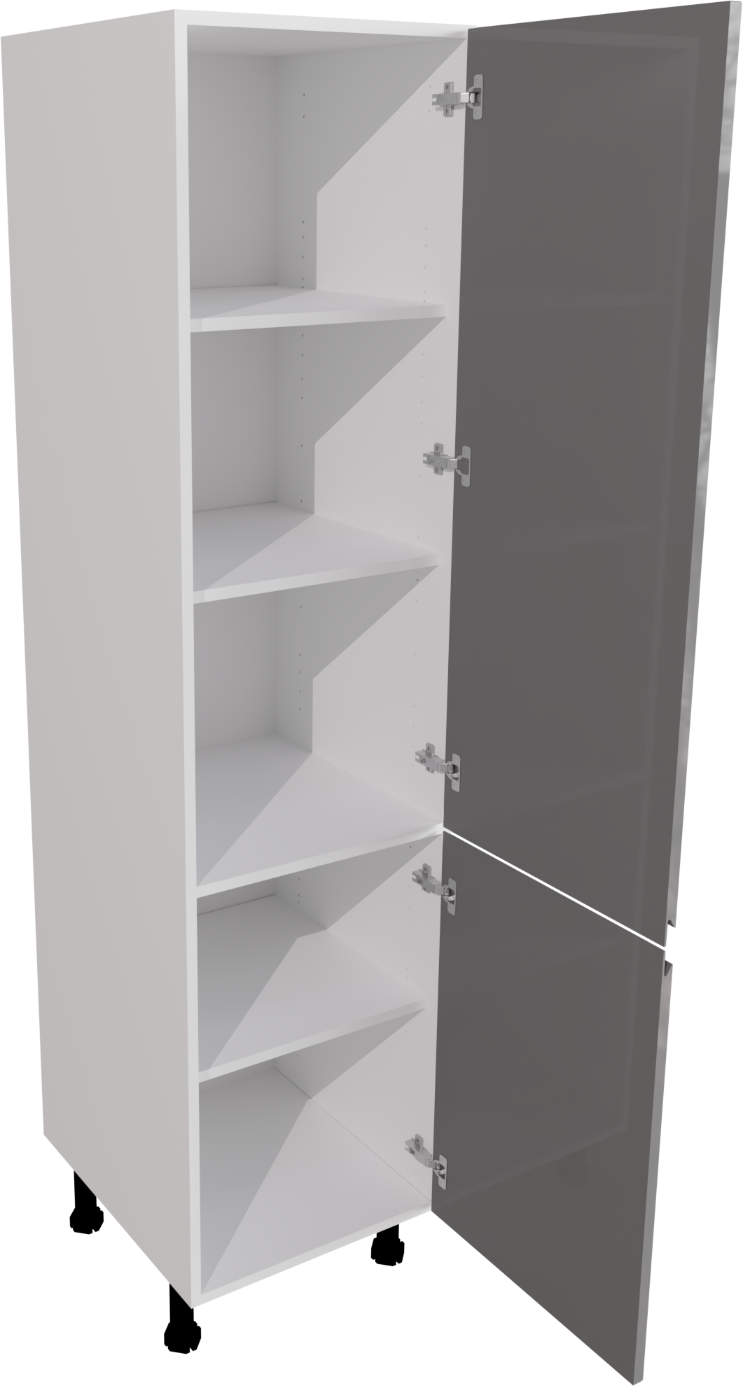 This is a 500mm handleless, high gloss dust grey larder unit from BA Components. The unit contains two jayline dust grey gloss doors and a matt 500mm larder cabinet made of the innovative cam and dowel design, making it easy to assemble. This listing includes the following parts: