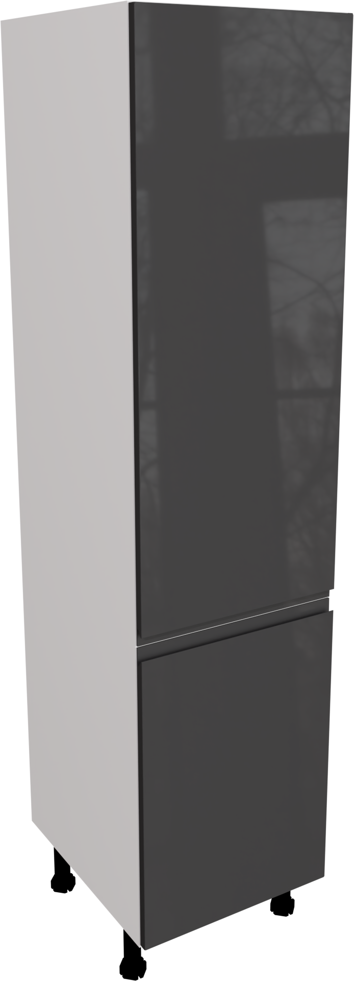This is a 500mm handleless, high gloss graphite larder unit from BA Components. The unit contains two jayline graphite gloss doors and a matt 500mm larder cabinet made of the innovative cam and dowel design, making it easy to assemble. This listing includes the following parts: