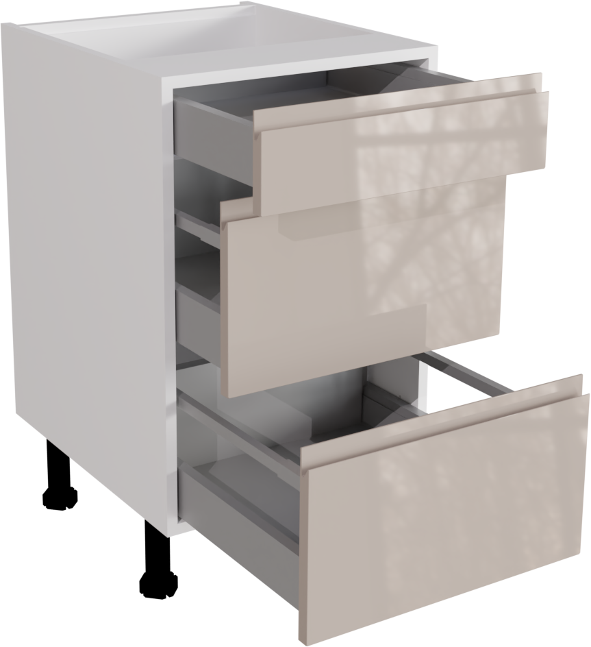 500mm Handleless Gloss Cashmere Kitchen 3 Drawer Base Unit - JGCA-3DU500