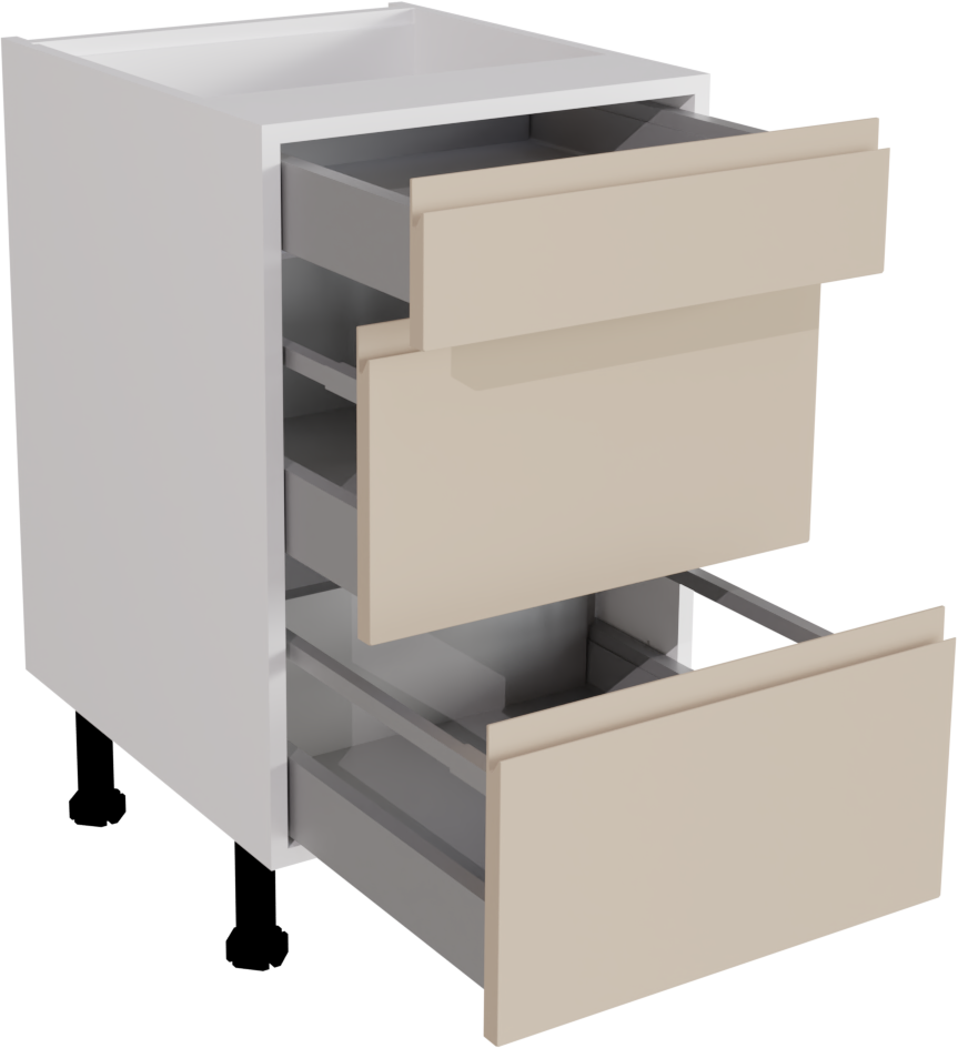 500mm Handleless Matt Cashmere Kitchen 3 Drawer Base Unit - JMCA-3DU500
