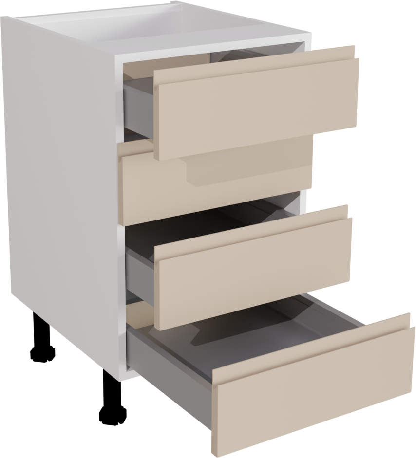 500mm Handleless Matt Cashmere Kitchen 4 Drawer Base Unit - JMCA-4DU500