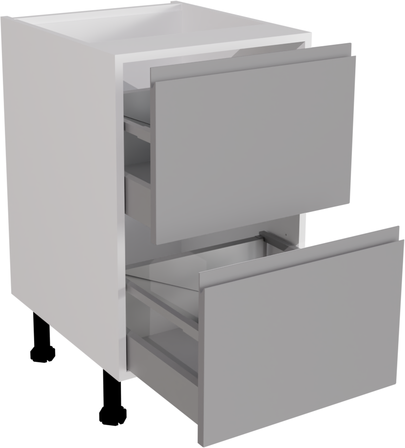 Crafted with contemporary sophistication, the 500mm Handleless Matt Dust Grey Kitchen 2 Drawer Base Unit embodies sleek design and practicality for modern kitchen spaces. Its minimalist elegance, coupled with two spacious drawers, provides efficient storage solutions while maintaining a stylish and streamlined aesthetic in any culinary setting. This listing includes the following parts: