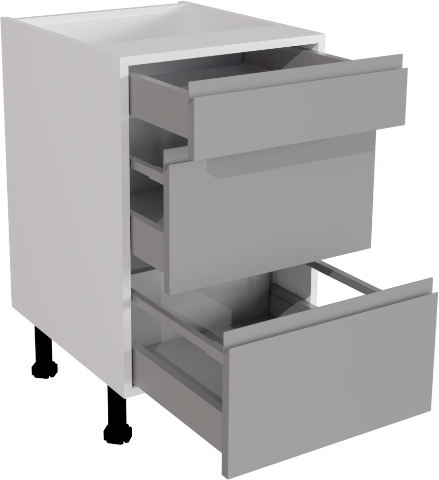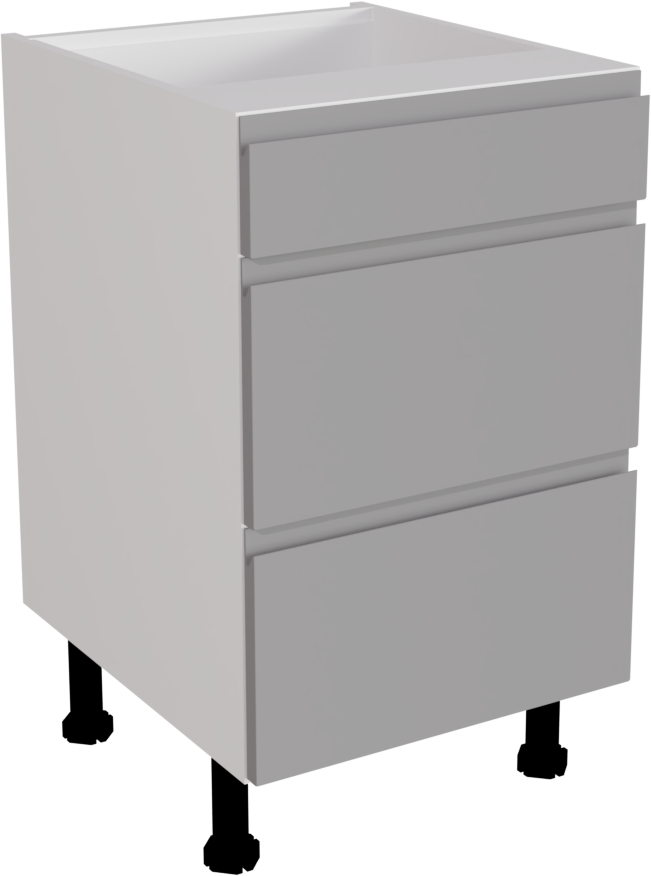 The 500mm Handleless Matt Dust Grey Kitchen 3 Drawer Base Unit epitomizes modern elegance with its sleek design and versatile functionality, perfectly suited for contemporary kitchen environments. Featuring three spacious drawers and a handleless finish, it combines practical storage solutions with a minimalist aesthetic, enhancing both style and efficiency in the kitchen. This listing includes the following parts: