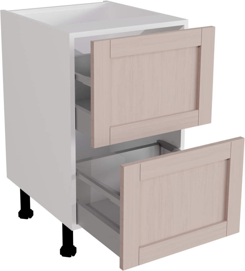 500mm Waterford Woodgrain Cashmere Kitchen 2 Drawer Base Unit - WWCA-2DU500