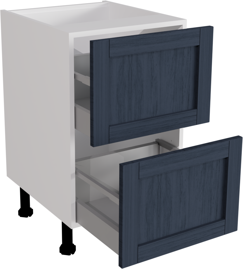 500mm Waterford Woodgrain Indigo Blue Kitchen 2 Drawer Base Unit - WWINB-2DU500