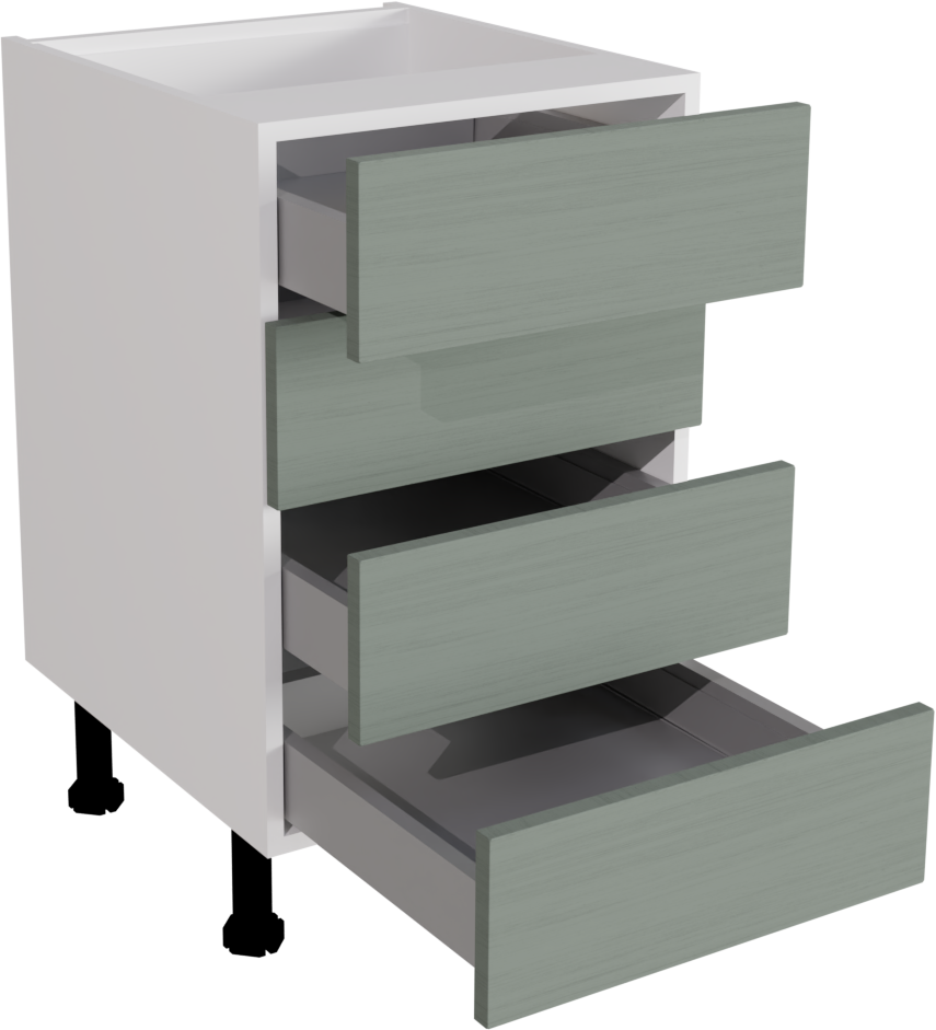 500mm Waterford Woodgrain Sage Green Kitchen 4 Drawer Base Unit - WWSAG-4DU500