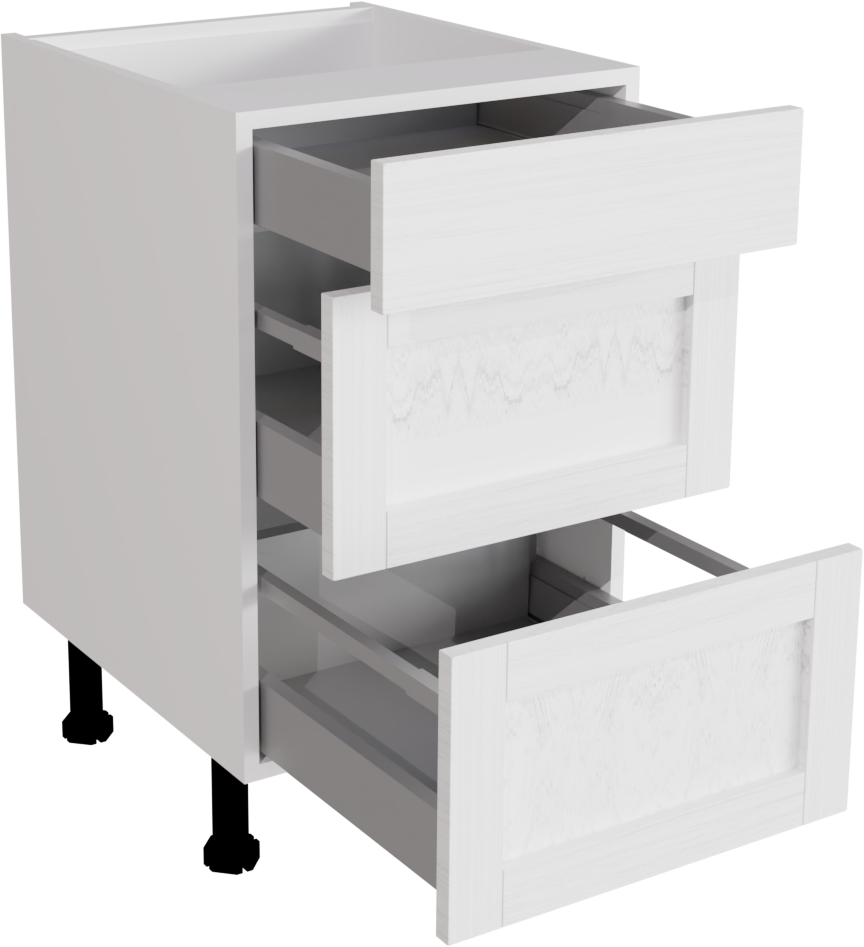 500mm Waterford Woodgrain White Kitchen 3 Drawer Base Unit - WWWH-3DU500