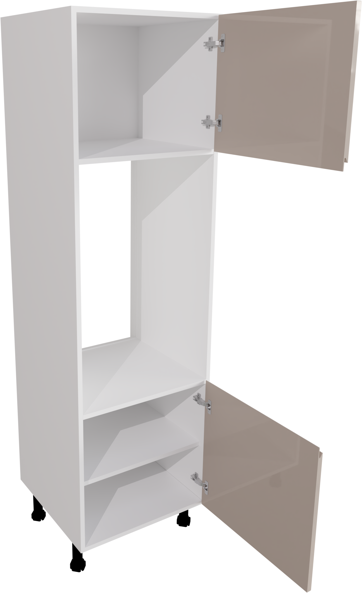 This is a 600mm handleless, gloss cashmere kitchen double oven unit. This unit includes the following parts: