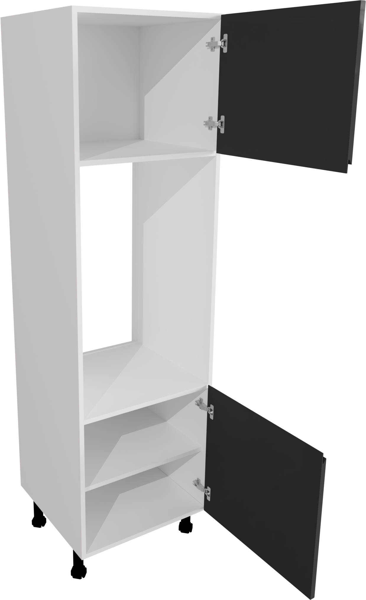 This is a 600mm handleless, gloss graphite kitchen double oven unit. This unit includes the following parts: