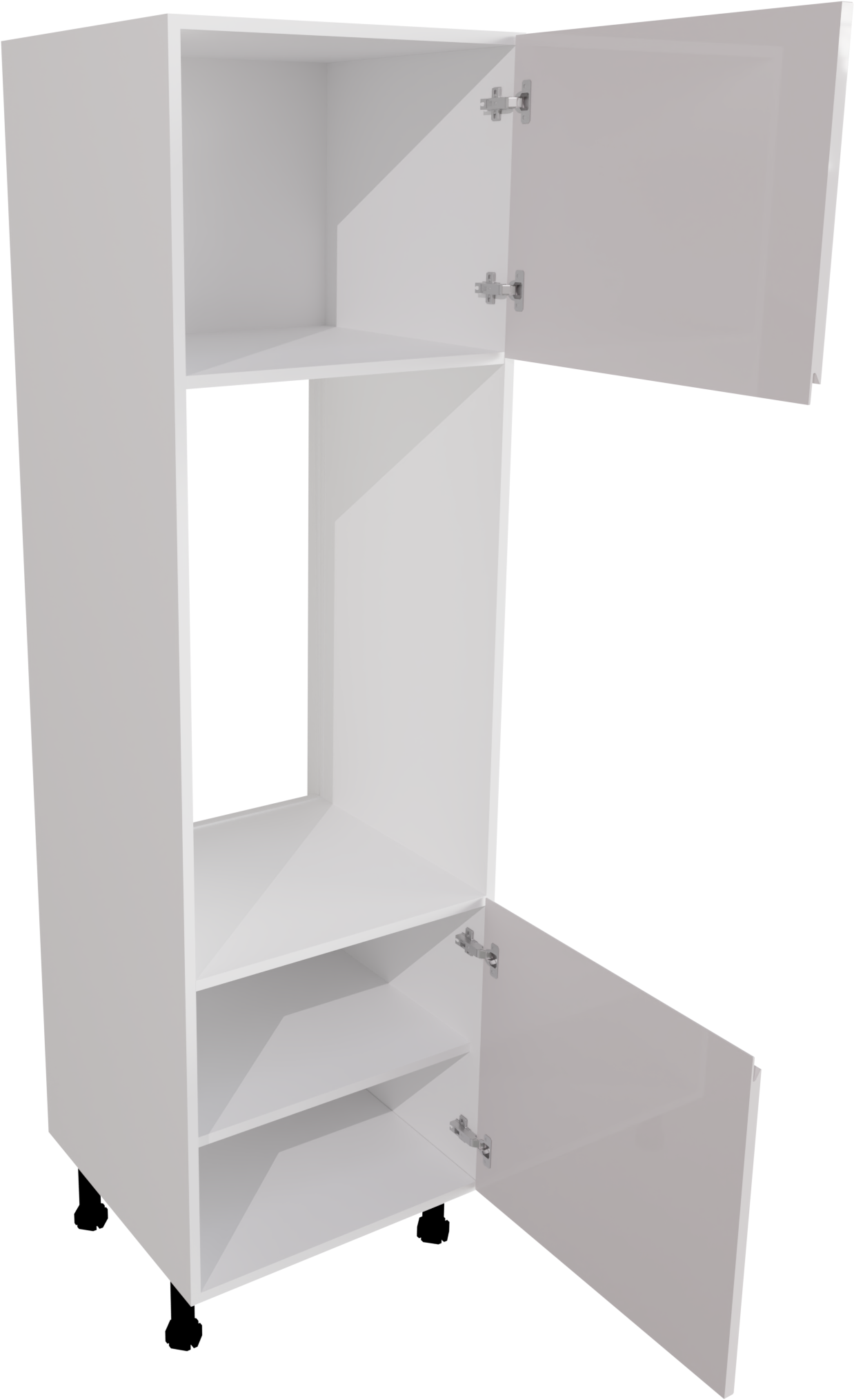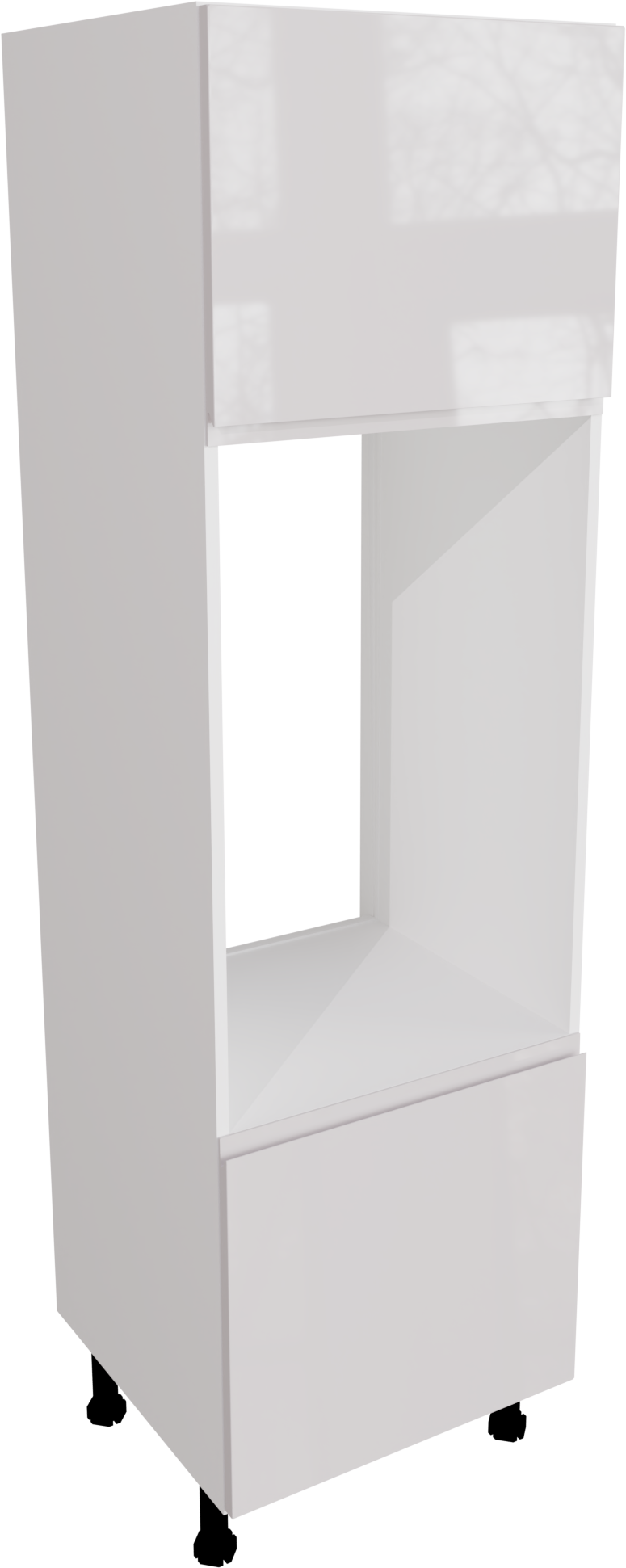 This is a 600mm handleless, gloss white kitchen double oven unit. This unit includes the following parts: