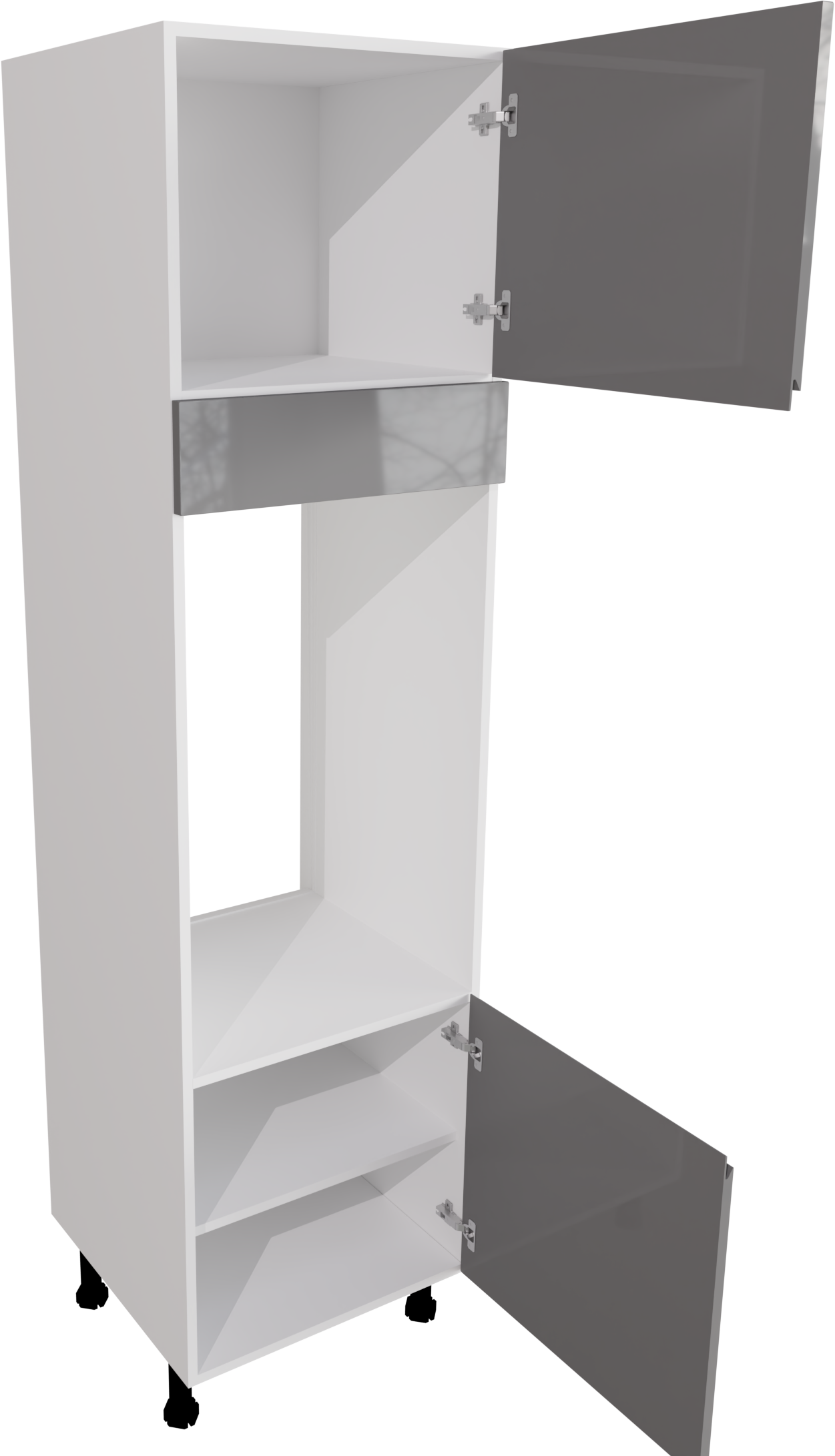 This is a 600mm handleless, gloss dust grey double oven tall unit(2150mm high). This listing includes the following parts:
