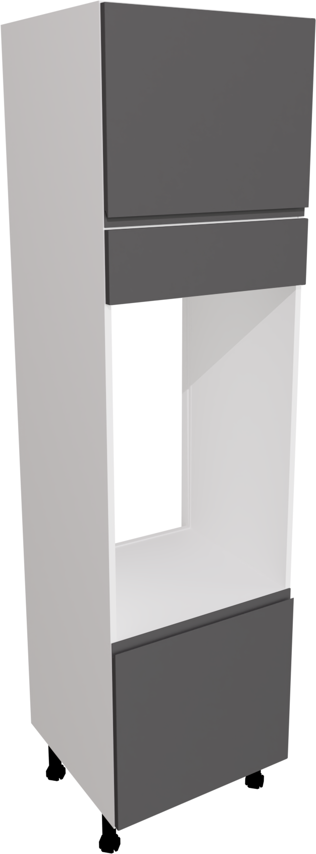 The 600mm Handleless Matt Graphite Kitchen Double Oven Tall Unit, standing at 2150mm high, elegantly combines functionality with modern design, providing ample space for housing double ovens in contemporary kitchens. With its handleless feature and graphite finish, this unit seamlessly integrates into the kitchen, offering a stylish and practical solution for cooking enthusiasts seeking both aesthetics and efficiency. This listing includes the following parts: