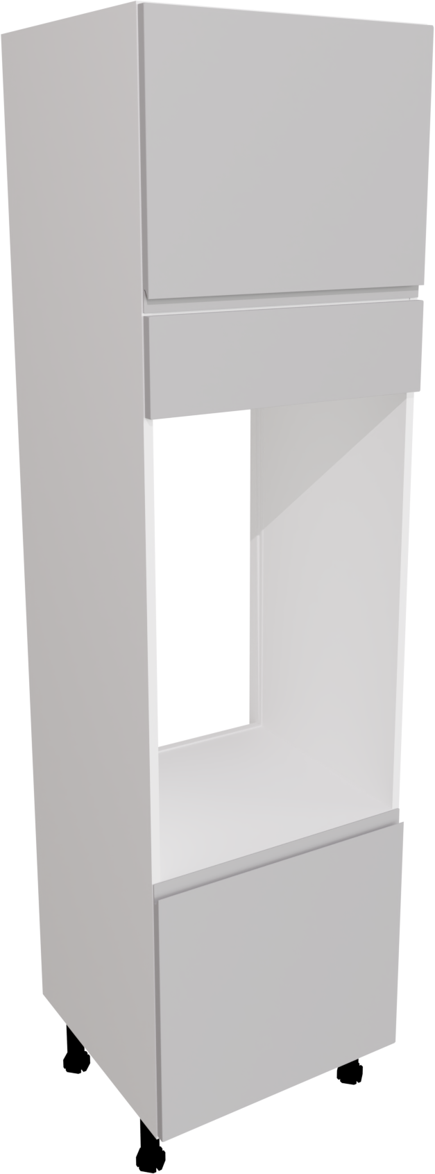 The 600mm Handleless Matt Light Grey Kitchen Double Oven Tall Unit, standing at 2150mm high, offers spacious storage and modern functionality, featuring a sleek design and sophisticated light grey finish. Ideal for accommodating two ovens while optimising vertical space in the kitchen, adding a touch of contemporary elegance to the overall design. This listing includes the following parts: