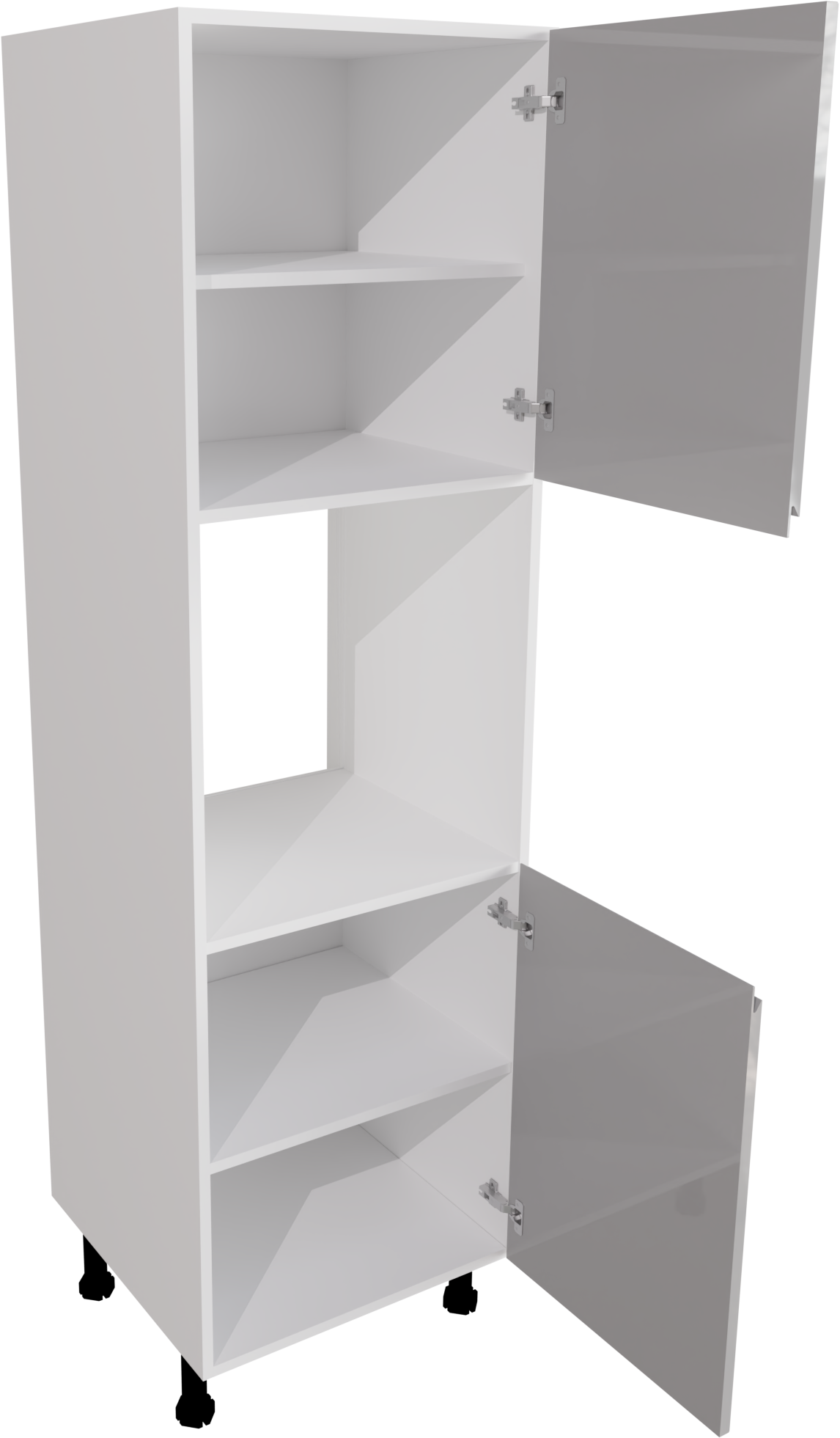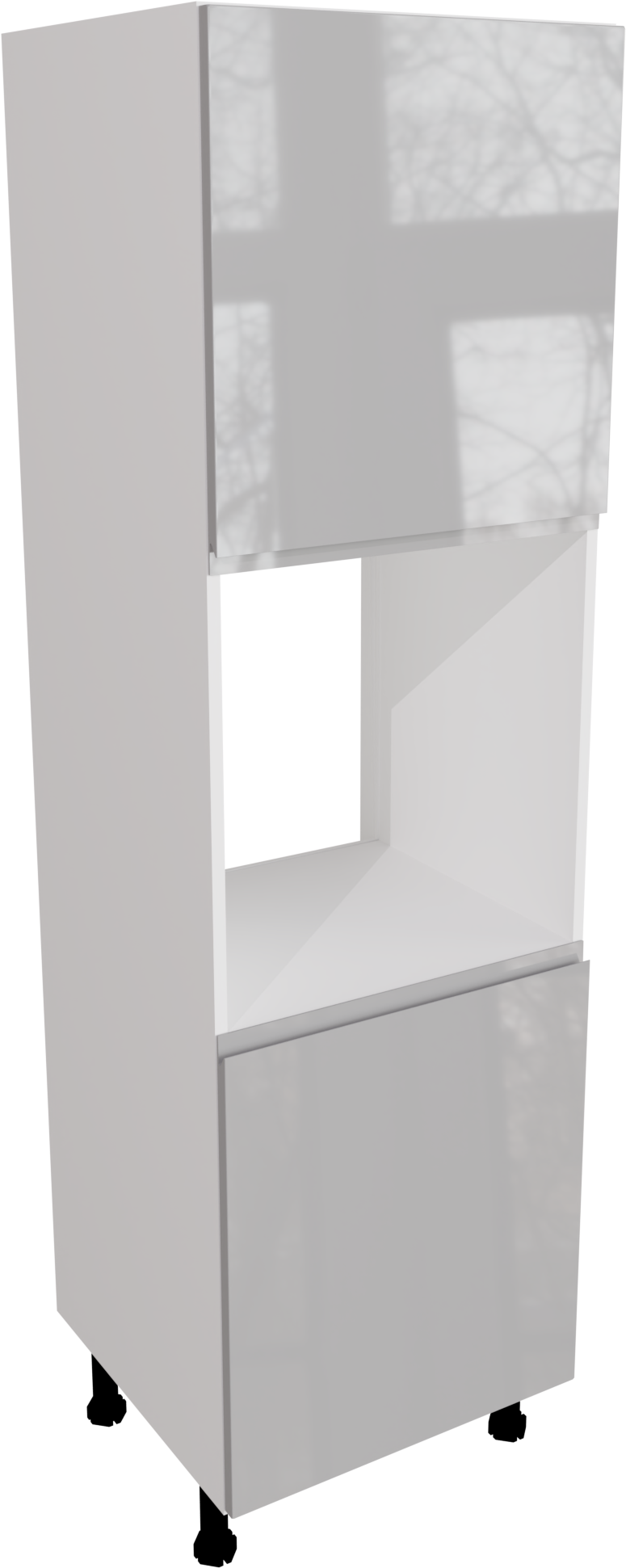 This is a 600mm handleless gloss light grey kitchen oven unit. It is suitable for use with a single oven. This unit includes the following parts: