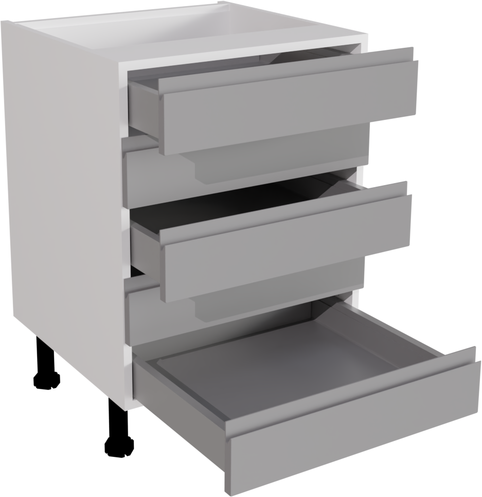The 600mm Handleless Matt Dust Grey Kitchen 5 Drawer Base Unit offers a harmonious blend of modern design and functional storage, ideal for contemporary kitchens. With its sleek handleless finish and five spacious drawers, it provides ample space for organising kitchen essentials while adding a touch of elegance to the space. This listing includes the following parts: