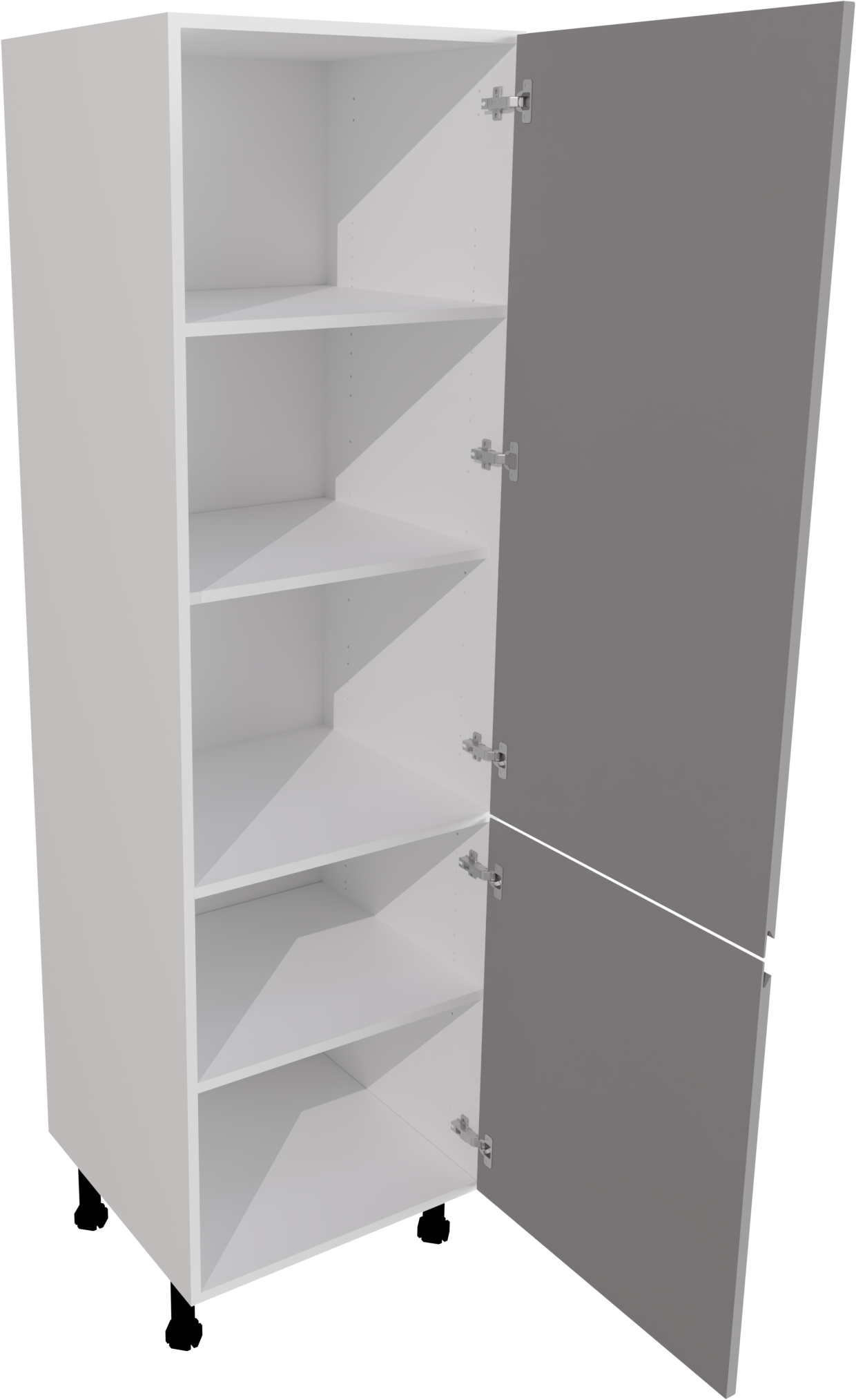 The 600mm Handleless Matt Dust Grey Kitchen Larder Unit combines spacious storage capacity with a sleek, modern design, ideal for contemporary kitchens. Its handleless profile enhances the minimalist aesthetic while offering convenient organisation for pantry items or kitchen essentials, ensuring both functionality and style in your kitchen layout.