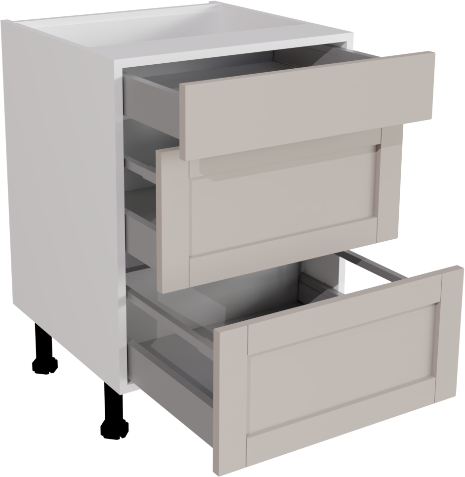 600mm Waterford matt Cashmere Kitchen 3 Drawer Base Unit - WMCA-3DU600