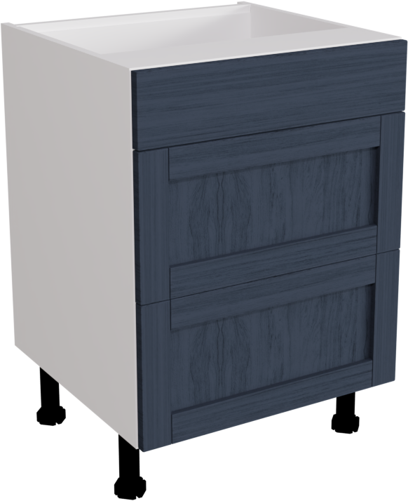 600mm Waterford Woodgrain Indigo Blue Kitchen 3 Drawer Base Unit - WWINB-3DU600