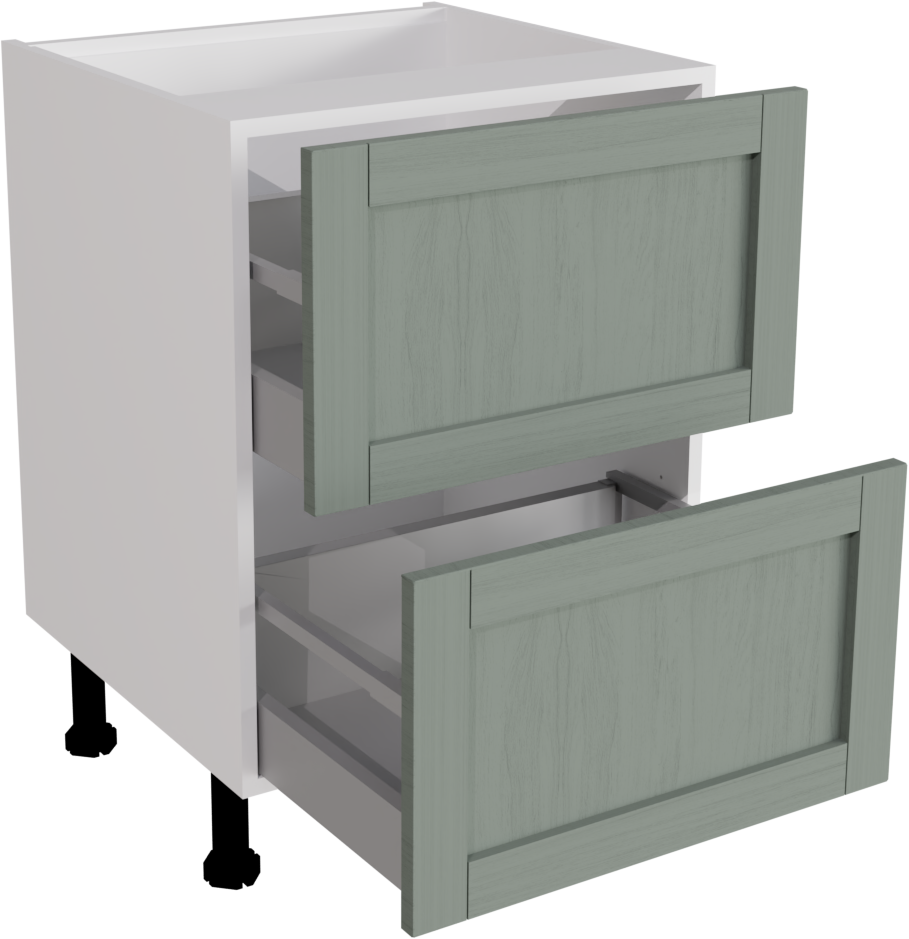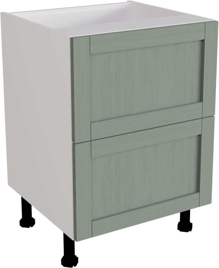 600mm Waterford Woodgrain Sage Green Kitchen 2 Drawer Base Unit - WWSAG-2DU600