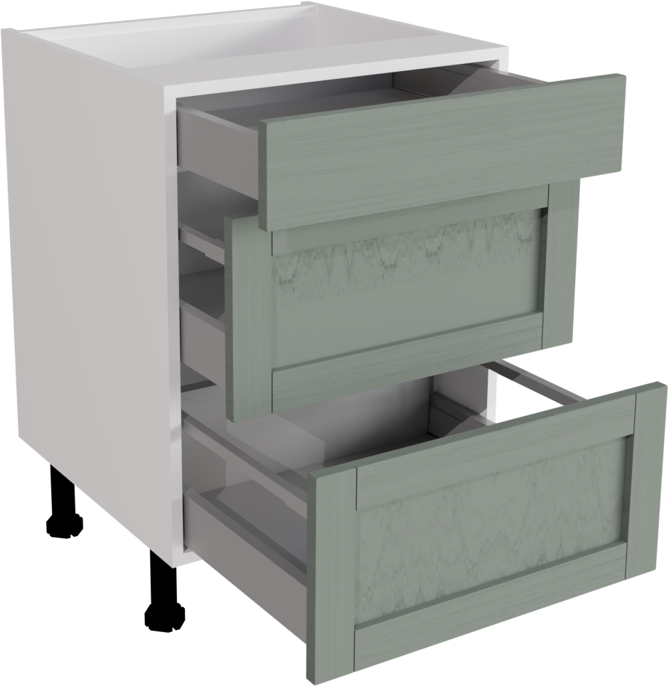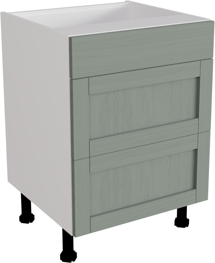 600mm Waterford Woodgrain Sage Green Kitchen 3 Drawer Base Unit - WWSAG-3DU600