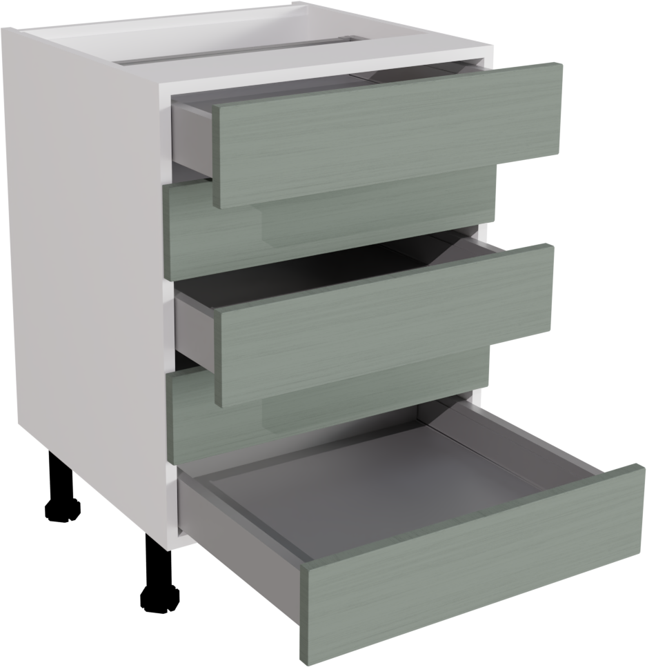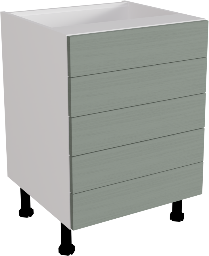 600mm Waterford Woodgrain Sage Green Kitchen 5 Drawer Base Unit - WWSAG-5DU600