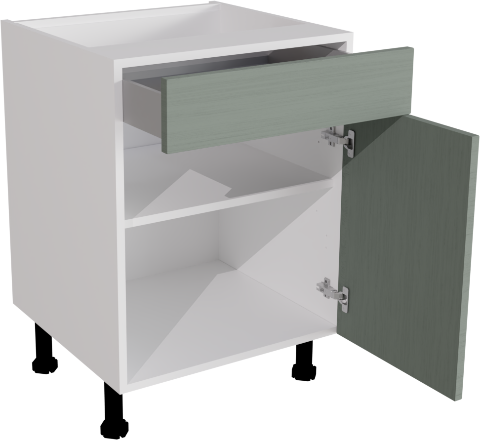 Information: 1 x 720 Base DD 600 ClicBox White 1 x Waterford Woodgrain Sage Green Pronto Door 570x596 1 x Waterford Woodgrain Sage Green Pronto Door 140x596 1 x 600W Atira Standard Drawer