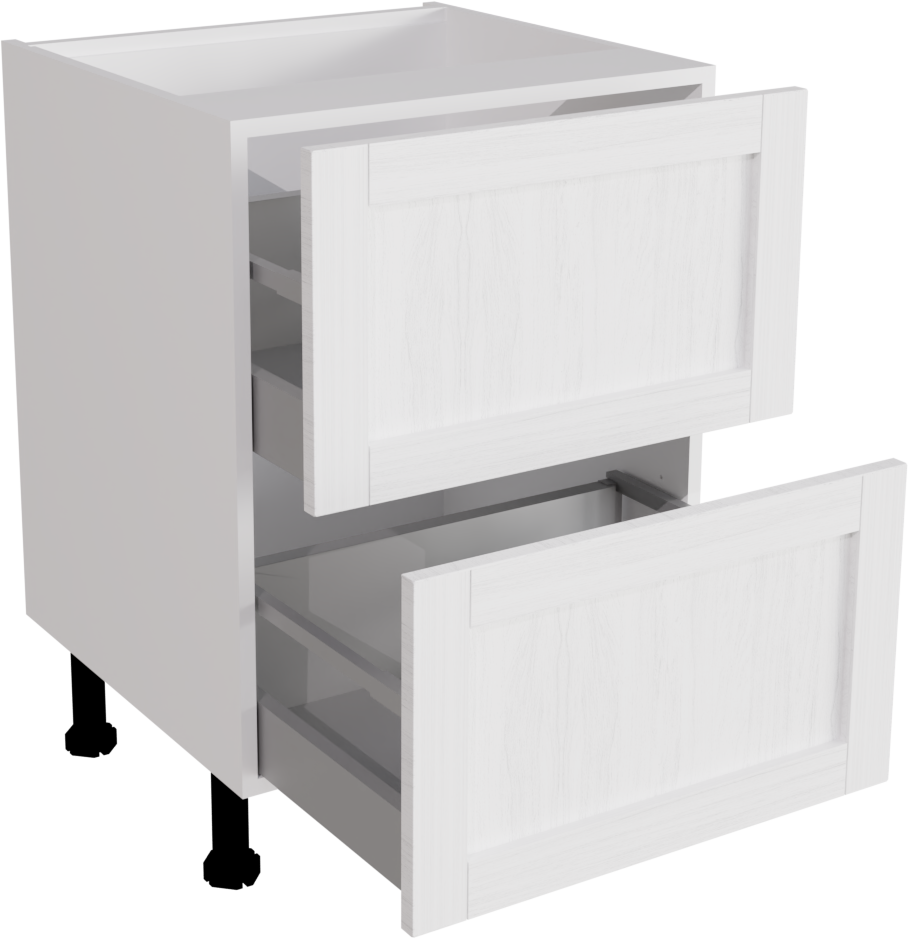 600mm Waterford Woodgrain White Kitchen 2 Drawer Base Unit - WWWH-2DU600