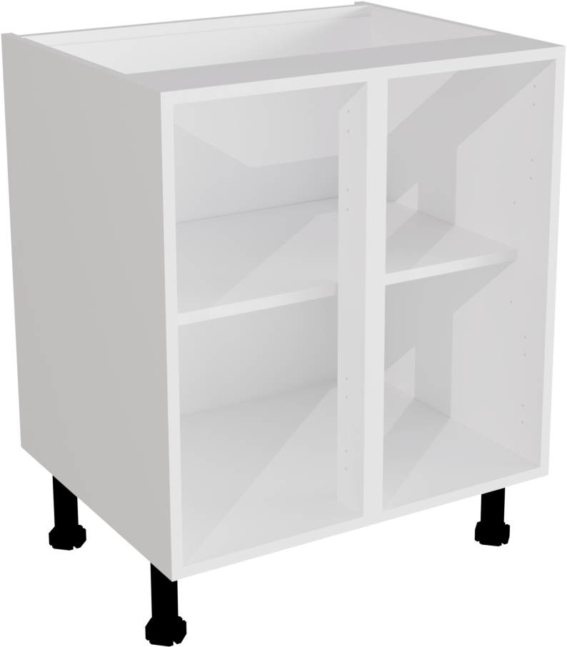 It is a white double base unit with a solid centre post. It also comes with adjustable legs. This unit uses 18mm MFC with an 8mm MDF back panel. It is made using the innovative cam and dowel technology, arriving flat-packed and easy to assemble.