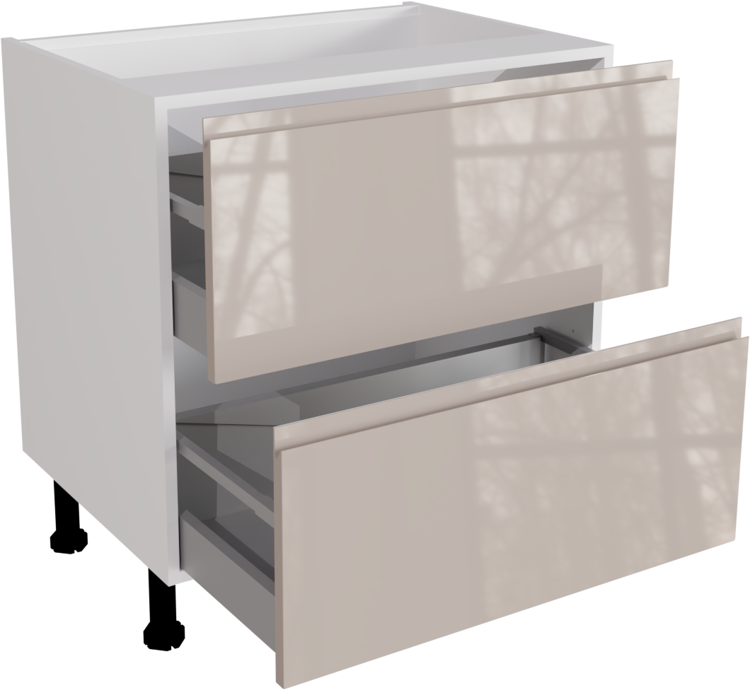 800mm Handleless Gloss Cashmere Kitchen 2 Drawer Base Unit - JGCA-2DU800