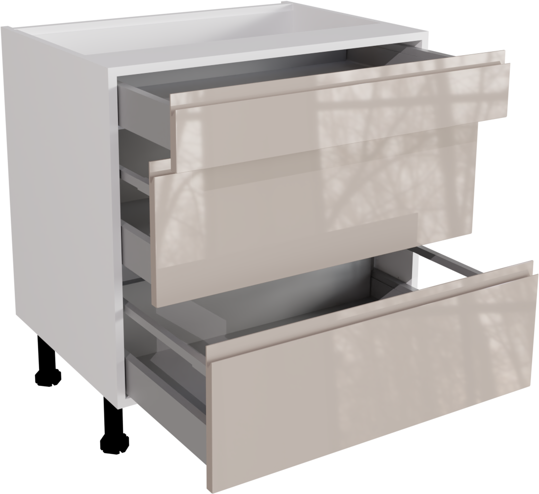 800mm Handleless Gloss Cashmere Kitchen 3 Drawer Base Unit - JGCA-3DU800