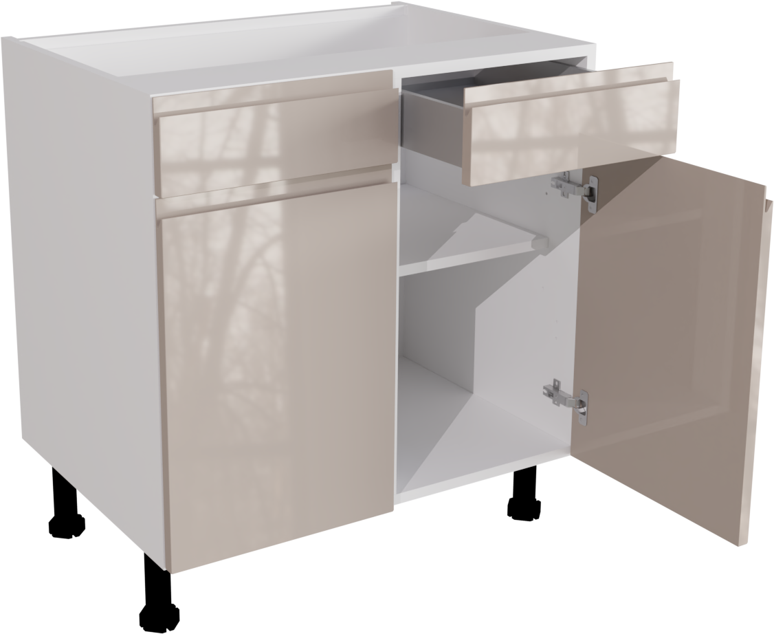 Information: 1 x 720 Base DD 800 ClicBox White 1 x Jayline Supergloss Cashmere Pronto Door 570x396 1 x Jayline Supergloss Cashmere Pronto Door 570x396 2 x Standard Hettich Hinge Pack (pair) Silver CPFITT0216 2 x Jayline Supergloss Cashmere Pronto Door 140x396 2 x 400W Atira Standard Drawer