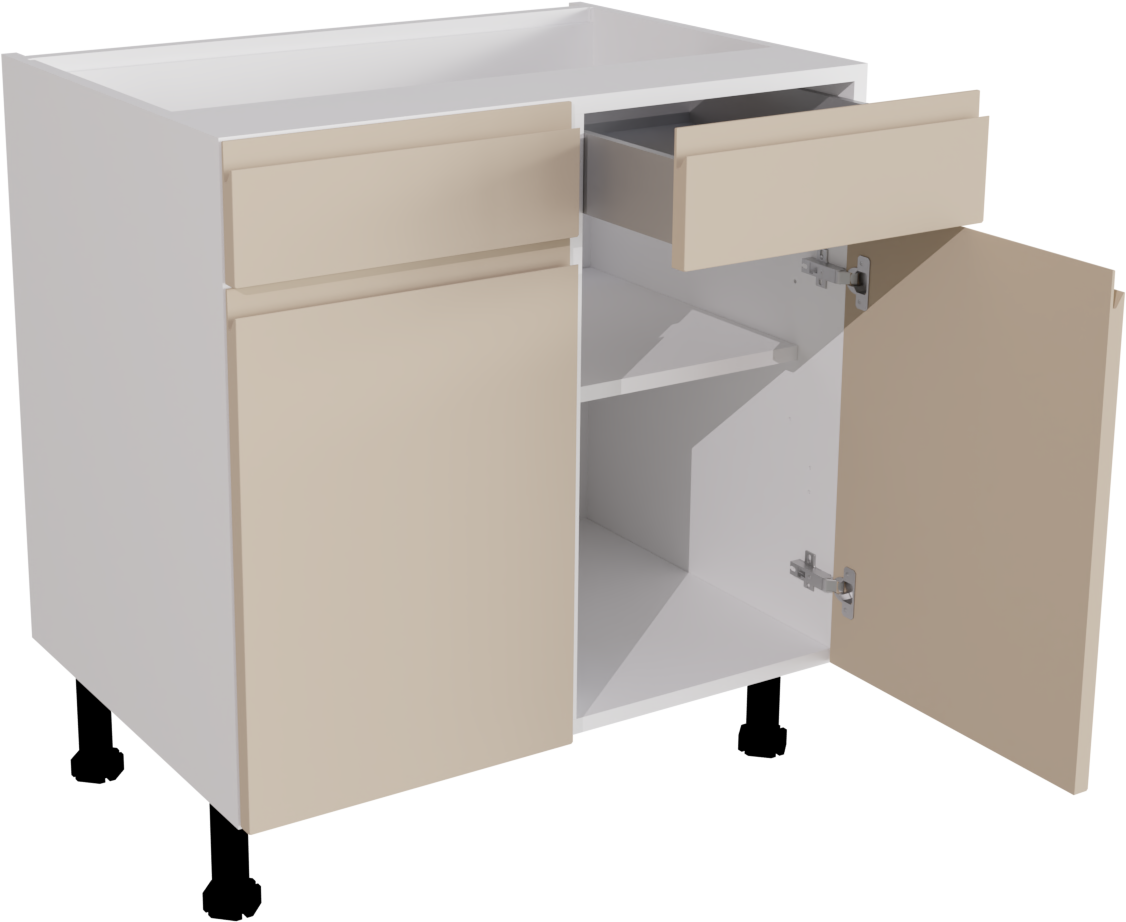 Information: 1 x 720 Base DD 800 NB White 1 x Jayline Supermatt Cashmere Pronto Door 570x396 1 x Jayline Supermatt Cashmere Pronto Door 570x396 2 x Standard Hettich Hinge Pack (pair) Silver CPFITT0216 2 x Jayline Supermatt Cashmere Pronto Door 140x396 2 x 400W Atira Standard Drawer