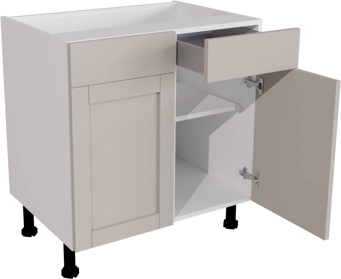 Information: 1 x 720 Base DD 800 ClicBox White 1 x Waterford Supermatt Cashmere Pronto Door 570x396 1 x Waterford Supermatt Cashmere Pronto Door 570x396 2 x Standard Hettich Hinge Pack (pair) Silver CPFITT0216 2 x Waterford Supermatt Cashmere Pronto Door 140x396 2 x 400W Atira Standard Drawer