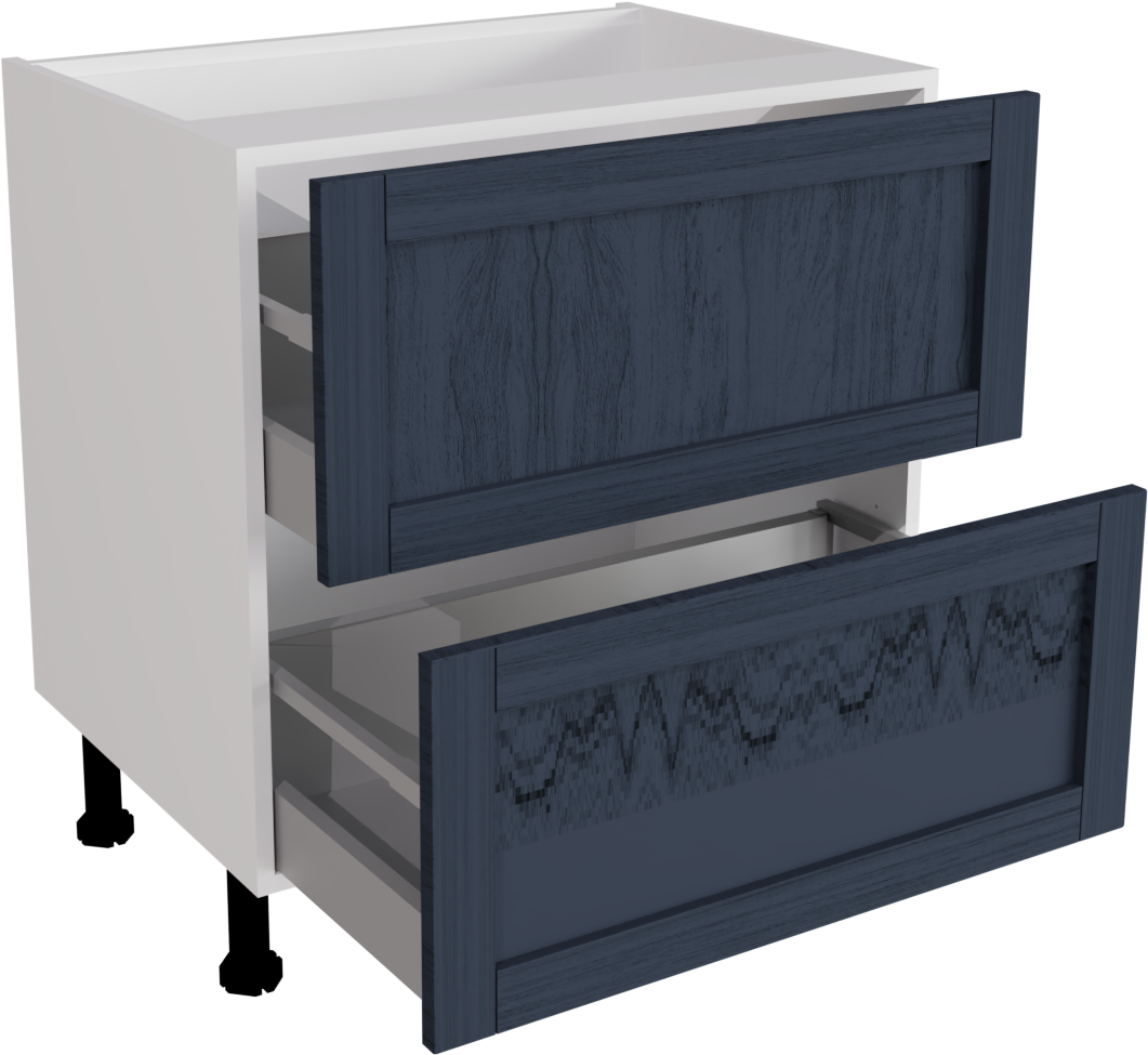 800mm Waterford Woodgrain Indigo Blue Kitchen 2 Drawer Base Unit - WWINB-2DU800