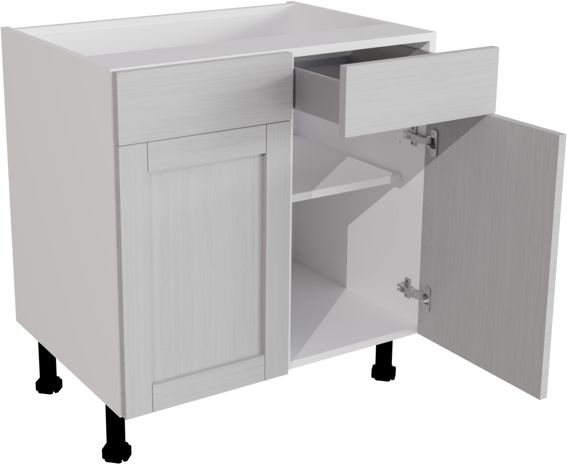 Information: 1 x 720 Base DD 800 ClicBox White 1 x Waterford Woodgrain Light Grey Pronto Door 570x396 1 x Waterford Woodgrain Light Grey Pronto Door 570x396 2 x Standard Hettich Hinge Pack (pair) Silver CPFITT0216 2 x Waterford Woodgrain Light Grey Pronto Door 140x396 2 x 400W Atira Standard Drawer