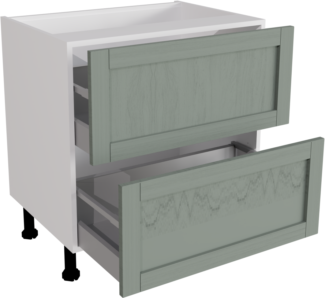 800mm Waterford Woodgrain Sage Green Kitchen 2 Drawer Base Unit - WWSAG-2DU800
