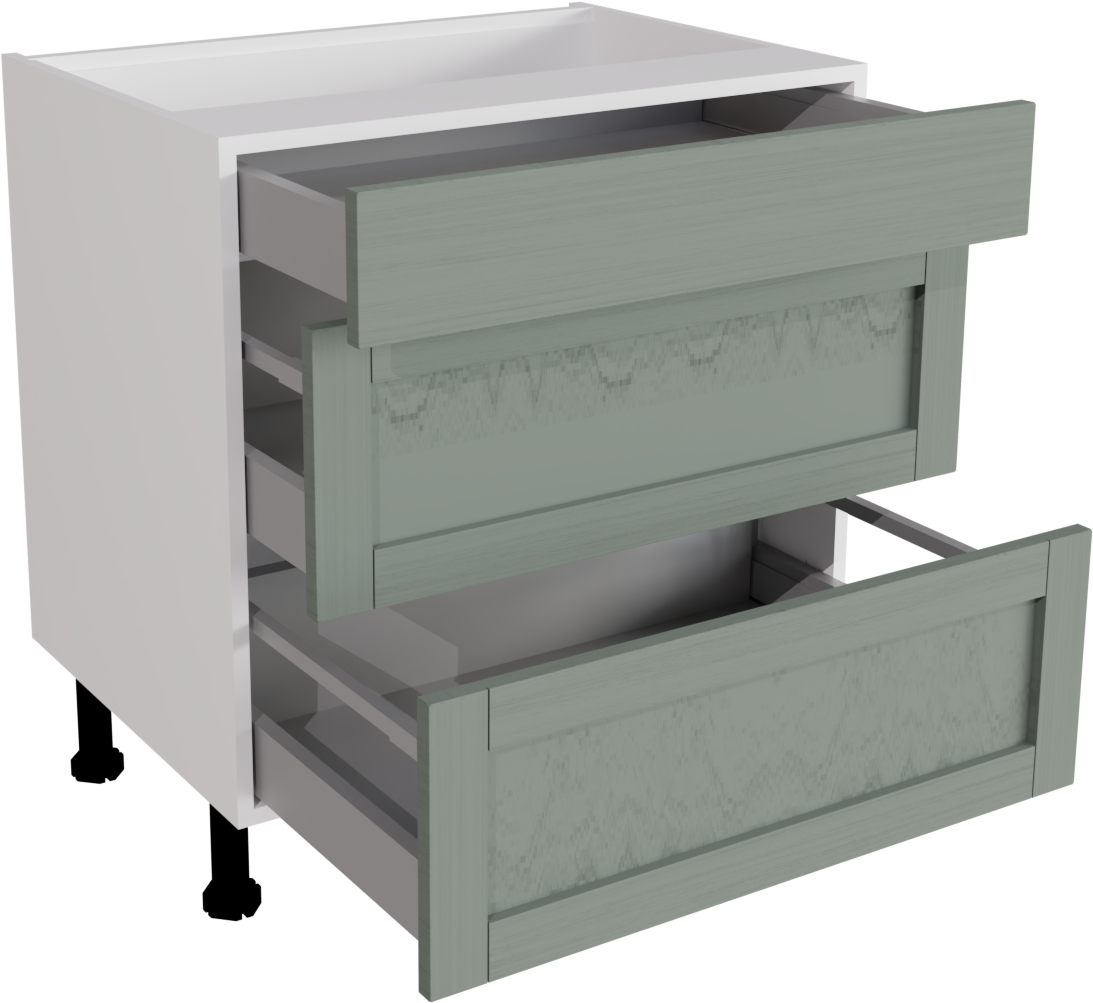 800mm Waterford Woodgrain Sage Green Kitchen 3 Drawer Base Unit - WWSAG-3DU800