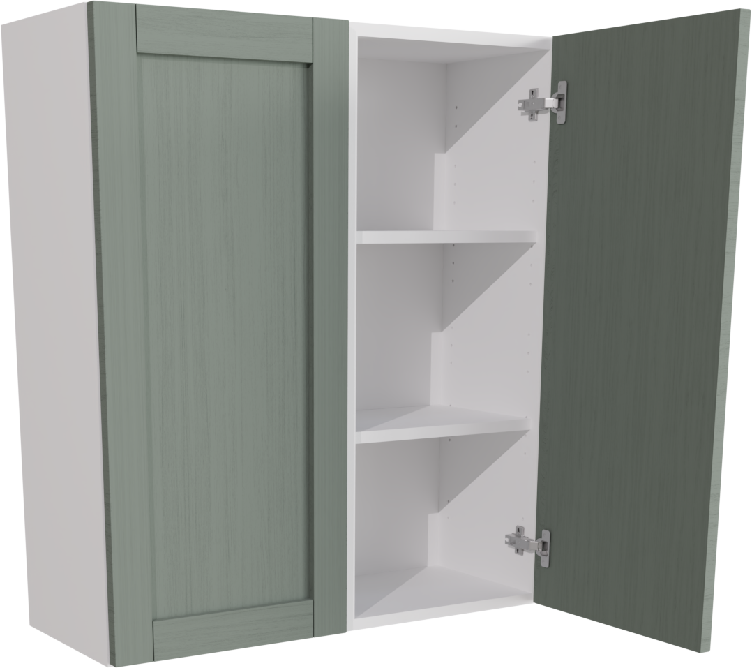 Information: 1 x 900 Wall Unit 800 ClicBox White 1 x Waterford Woodgrain Sage Green Pronto Door 895x396 1 x Waterford Woodgrain Sage Green Pronto Door 895x396 2 x Standard Hettich Hinge Pack (pair) Silver CPFITT0216