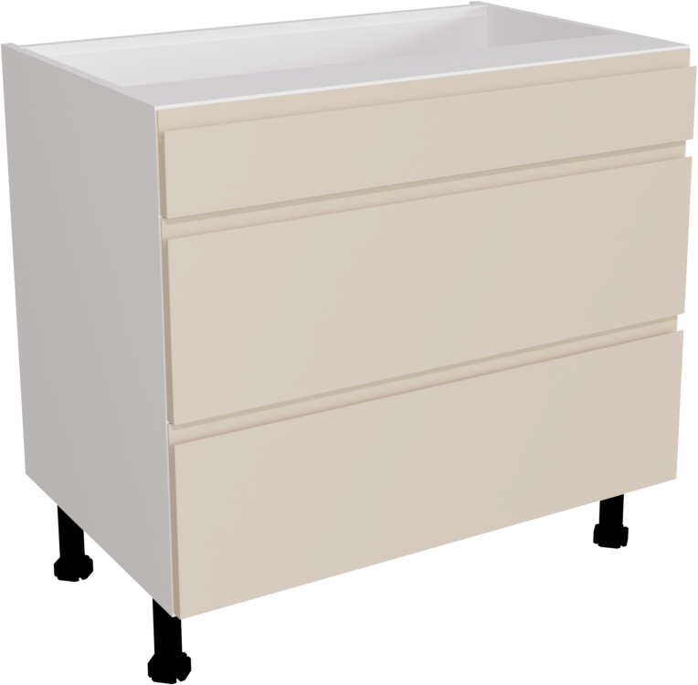 900mm Handleless Matt Cashmere Kitchen 3 Drawer Base Unit - JMCA-3DU900