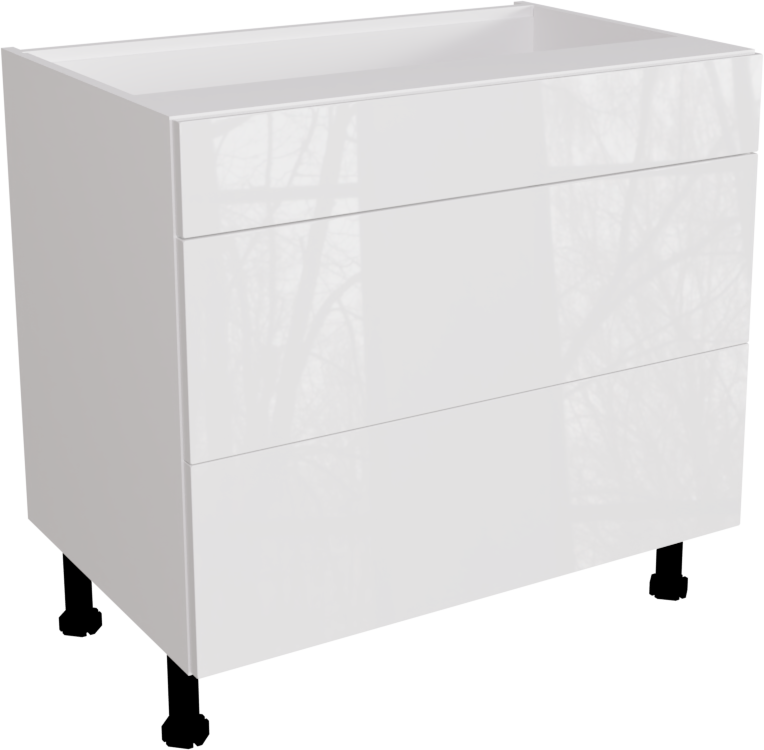 900mm Ora gloss White Kitchen 3 Drawer Base Unit - OGWH-3DU900