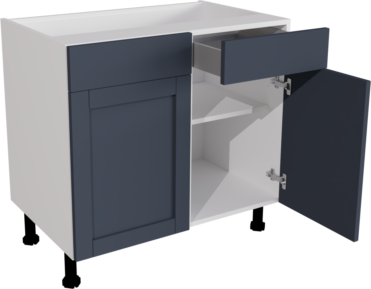 Information: 1 x 720 Base DD 900 ClicBox White 1 x Waterford Supermatt Indigo Blue Pronto Door 570x446 1 x Waterford Supermatt Indigo Blue Pronto Door 570x446 2 x Standard Hettich Hinge Pack (pair) Silver CPFITT0216 2 x Waterford Supermatt Indigo Blue Pronto Door 140x446 2 x 450W Atira Standard Drawer