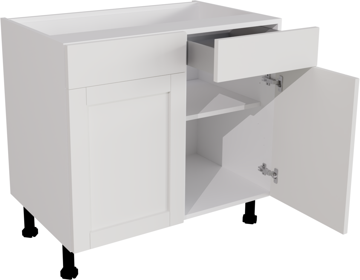Information: 1 x 720 Base DD 900 ClicBox White 1 x Waterford Supermatt White Pronto Door 570x446 1 x Waterford Supermatt White Pronto Door 570x446 2 x Standard Hettich Hinge Pack (pair) Silver CPFITT0216 2 x Waterford Supermatt White Pronto Door 140x446 2 x 450W Atira Standard Drawer