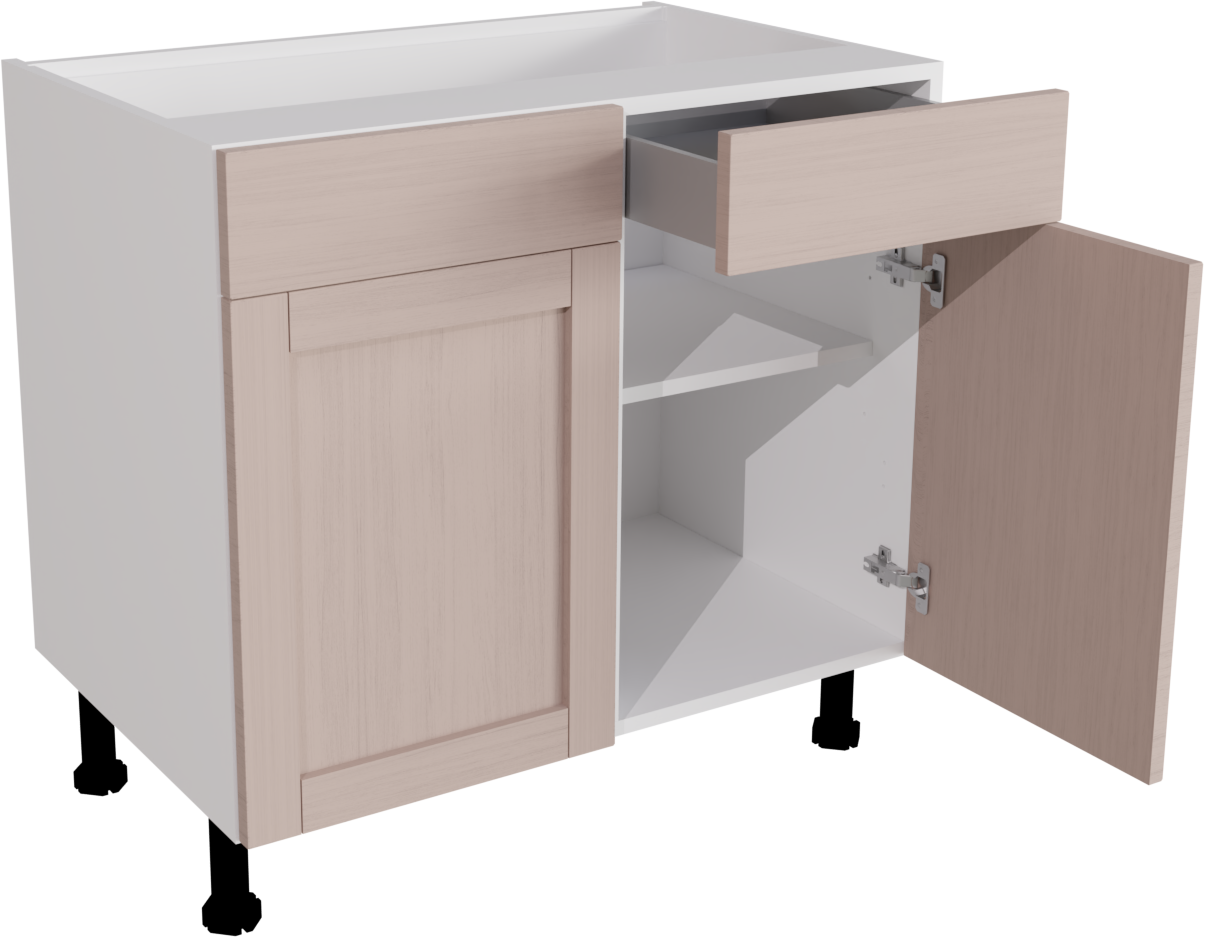 Information: 1 x 720 Base DD 900 ClicBox White 1 x Waterford Woodgrain Cashmere Pronto Door 570x446 1 x Waterford Woodgrain Cashmere Pronto Door 570x446 2 x Standard Hettich Hinge Pack (pair) Silver CPFITT0216 2 x Waterford Woodgrain Cashmere Pronto Door 140x446 2 x 450W Atira Standard Drawer