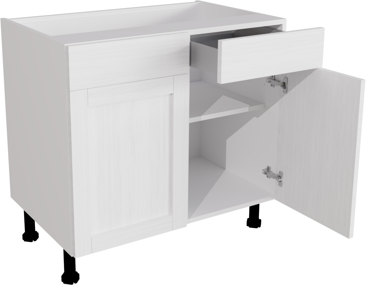 Information: 1 x 720 Base DD 900 ClicBox White 1 x Waterford Woodgrain White Pronto Door 570x446 1 x Waterford Woodgrain White Pronto Door 570x446 2 x Standard Hettich Hinge Pack (pair) Silver CPFITT0216 2 x Waterford Woodgrain White Pronto Door 140x446 2 x 450W Atira Standard Drawer