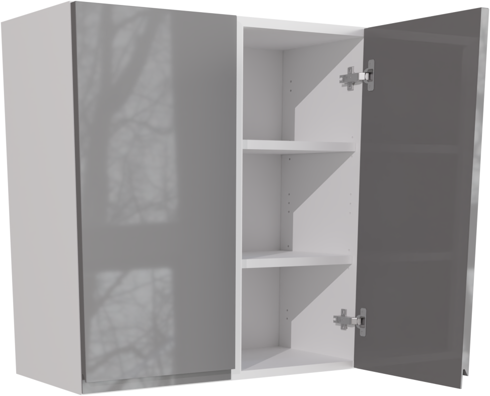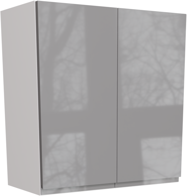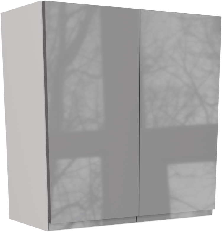 This is a 700mm handleless high gloss dust grey kitchen wall unit with two high gloss dust grey jayline kitchen doors. The unit consists of a 700mm kitchen wall cabinet, two 350mm jayline doors, four soft close hinges, two shelves and wall hanging brackets. Everything you need to assemble your kitchen unit and hang it on the wall.