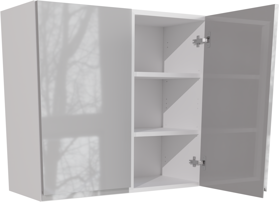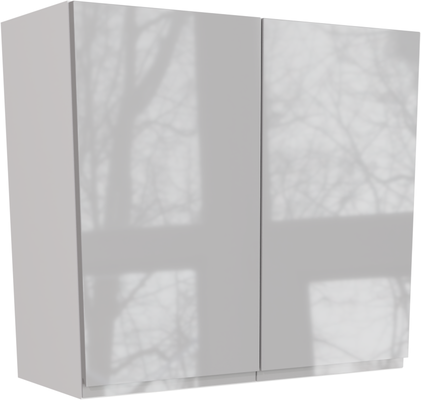 This is an 800mm handleless high gloss light grey kitchen wall unit with two high gloss light grey jayline kitchen doors. This listing includes the following parts: